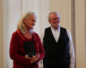 Eva Stockinger verbindet Kunst, Menschlichkeit und gesellschaftliche Verantwortung auf beeindruckende Weise (© Gerhard Koller, ÖBV Obmann und Obmann des Amateurtheaters OÖ). Gewürdigt werden daher auch ihr Mut, ihre Kreativität und ihr unermüdlicher Einsatz für das Theater und für Menschen, für die die Bretter die Welt bedeuten.